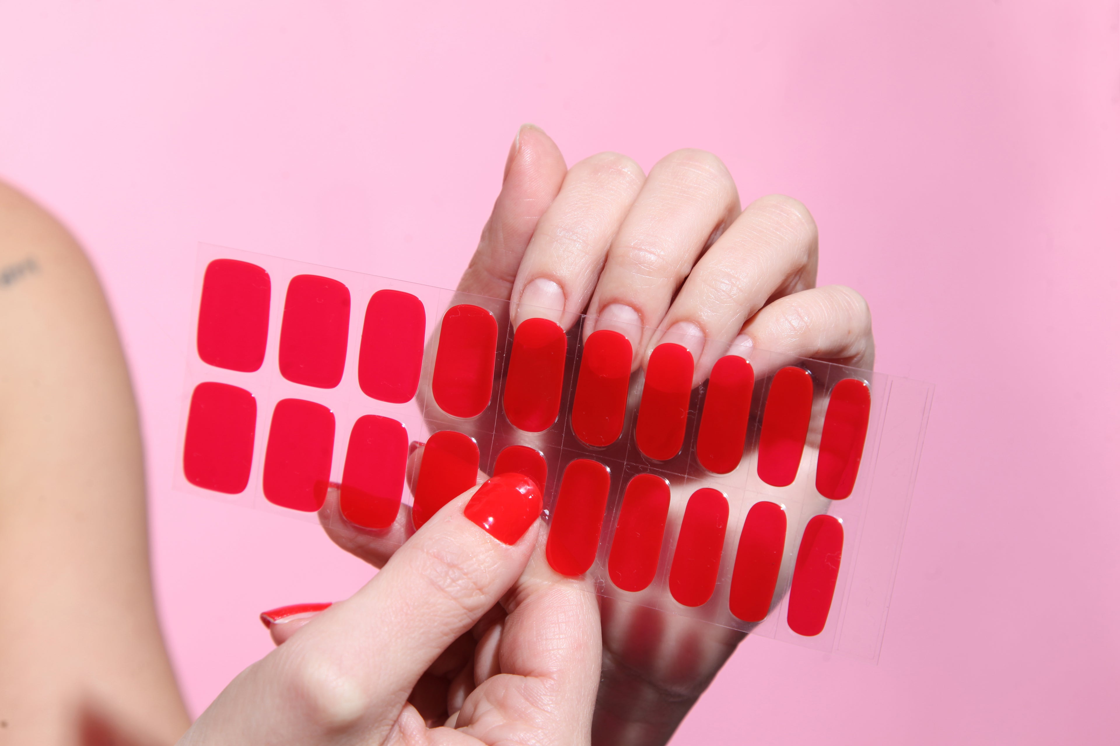 Posiziona la striscia sull'unghia con decisione. Tip per te: Una volta posizionata la striscia non rimuoverla per non compromettere la tenuta del prodotto.